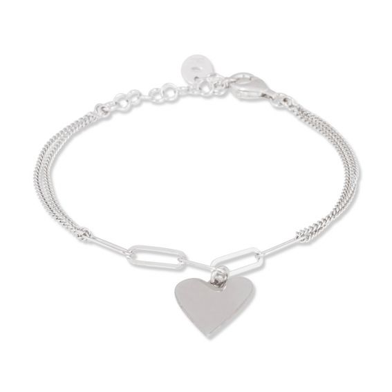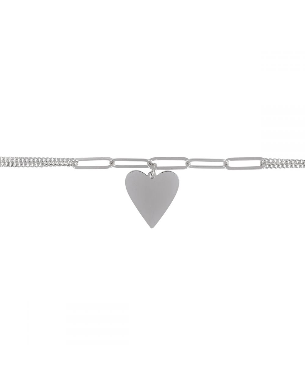 Deze armband is een dubbele armband met rechthoekige schakels en een hart van 15 mm hoog en 13 mm breed.
