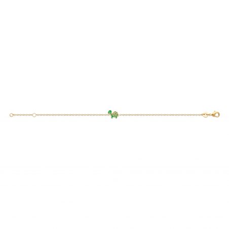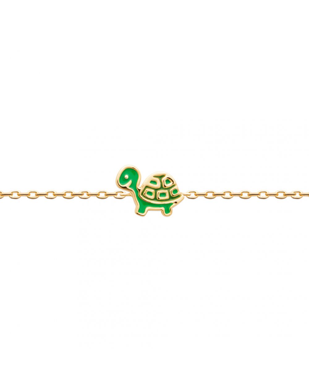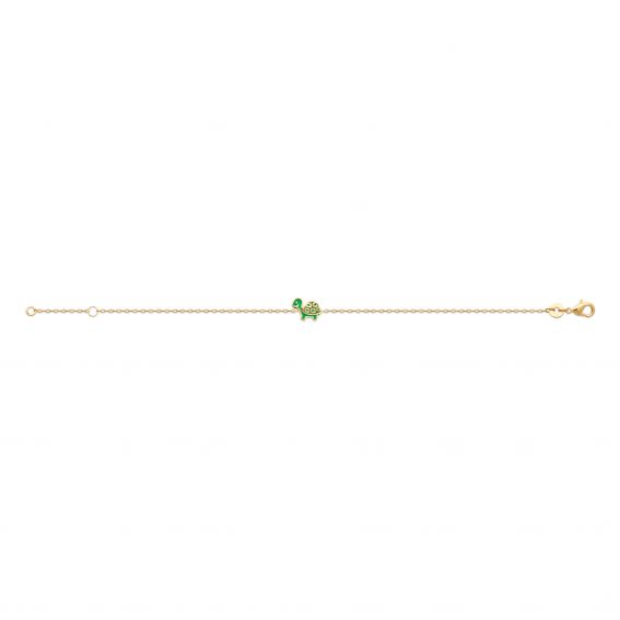 Deze kinderarmband is een 18k vergulde armband met groen geëmailleerde schildpad