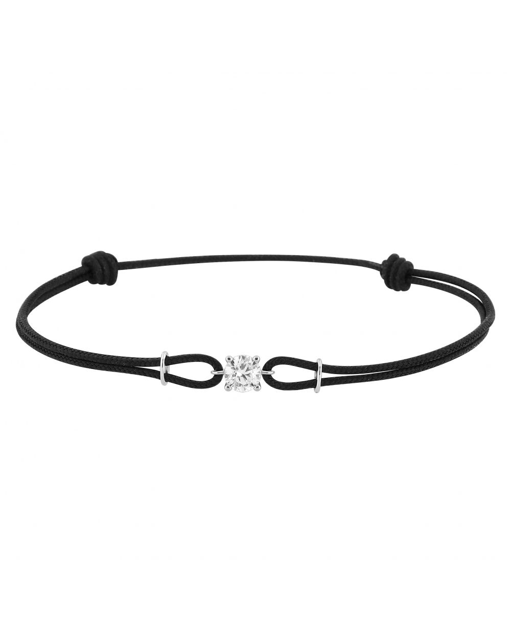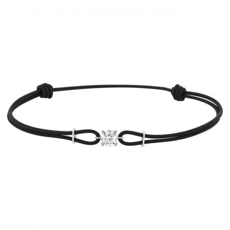 Deze 9 karaat witgouden armband is een verstelbare zwarte koordarmband met een 4-tands zirkonium