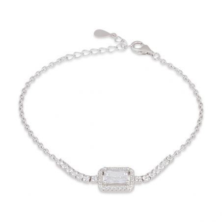 Deze armband is een voordelige armband voor dames, in lengte verstelbaar. Het is bezet met een grote rechthoekige steen van 5 mm bij 8 mm lang.