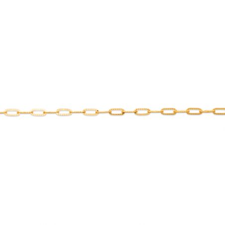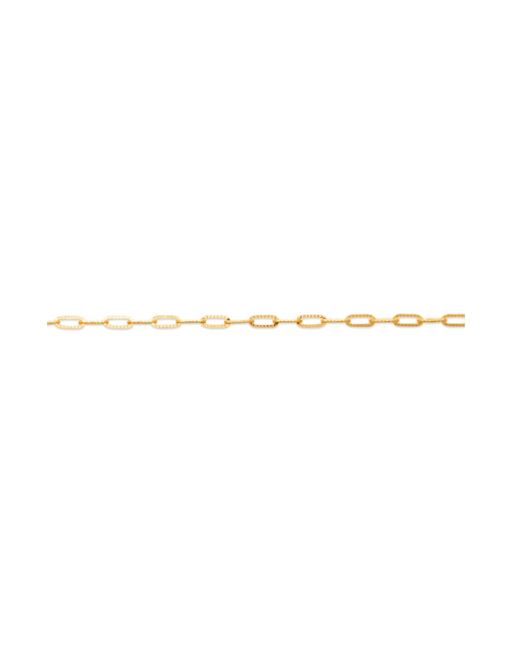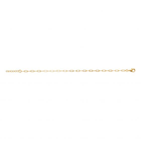 Deze armband is een 18-karaats vergulde armband gemaakt van kleine geribbelde schakels. Deze armband is in lengte verstelbaar van 16 tot 18 cm.