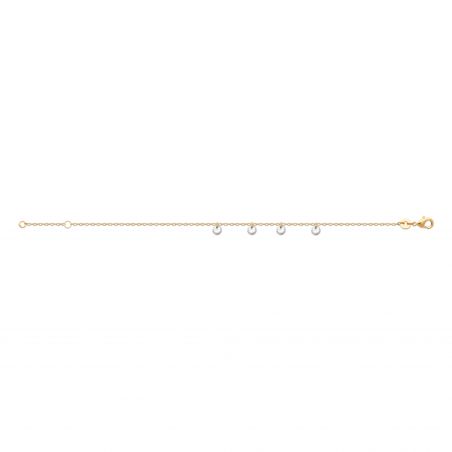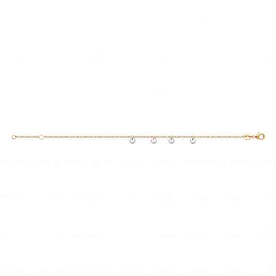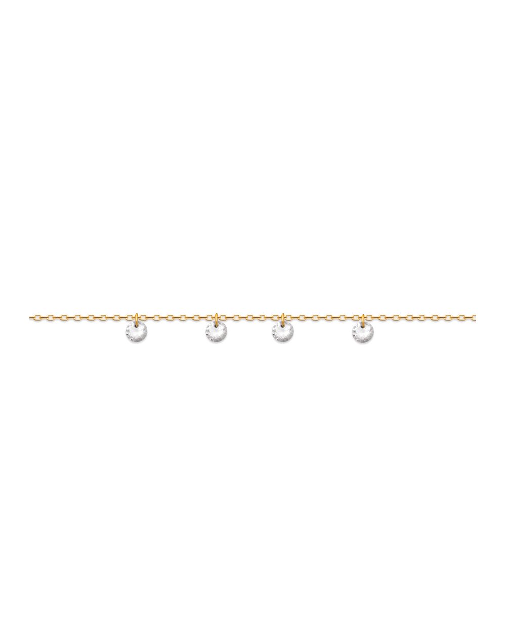 Deze armband is een 18k vergulde armband. Deze armband is 18 cm lang en in lengte verstelbaar en bestaat uit meerdere bungelende zirkoniumoxidekorrels.
