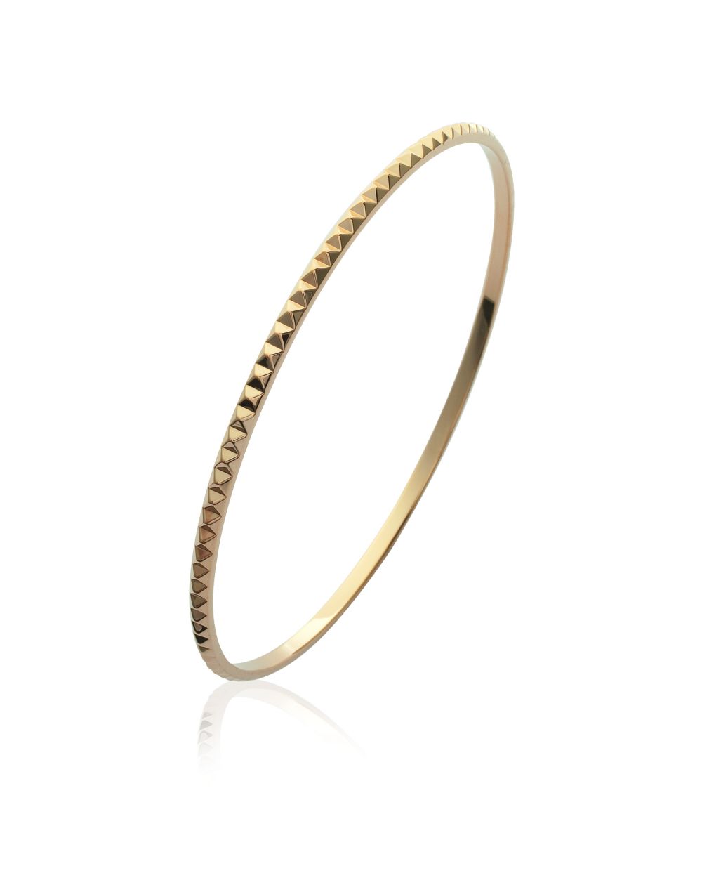 Deze stijlvolle armband is 18-karaats verguld en heeft een eenvoudig maar verfijnd ontwerp met een reeks piramides in reliëf, waardoor het een onderscheidende textuur en moderne glans krijgt.