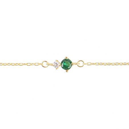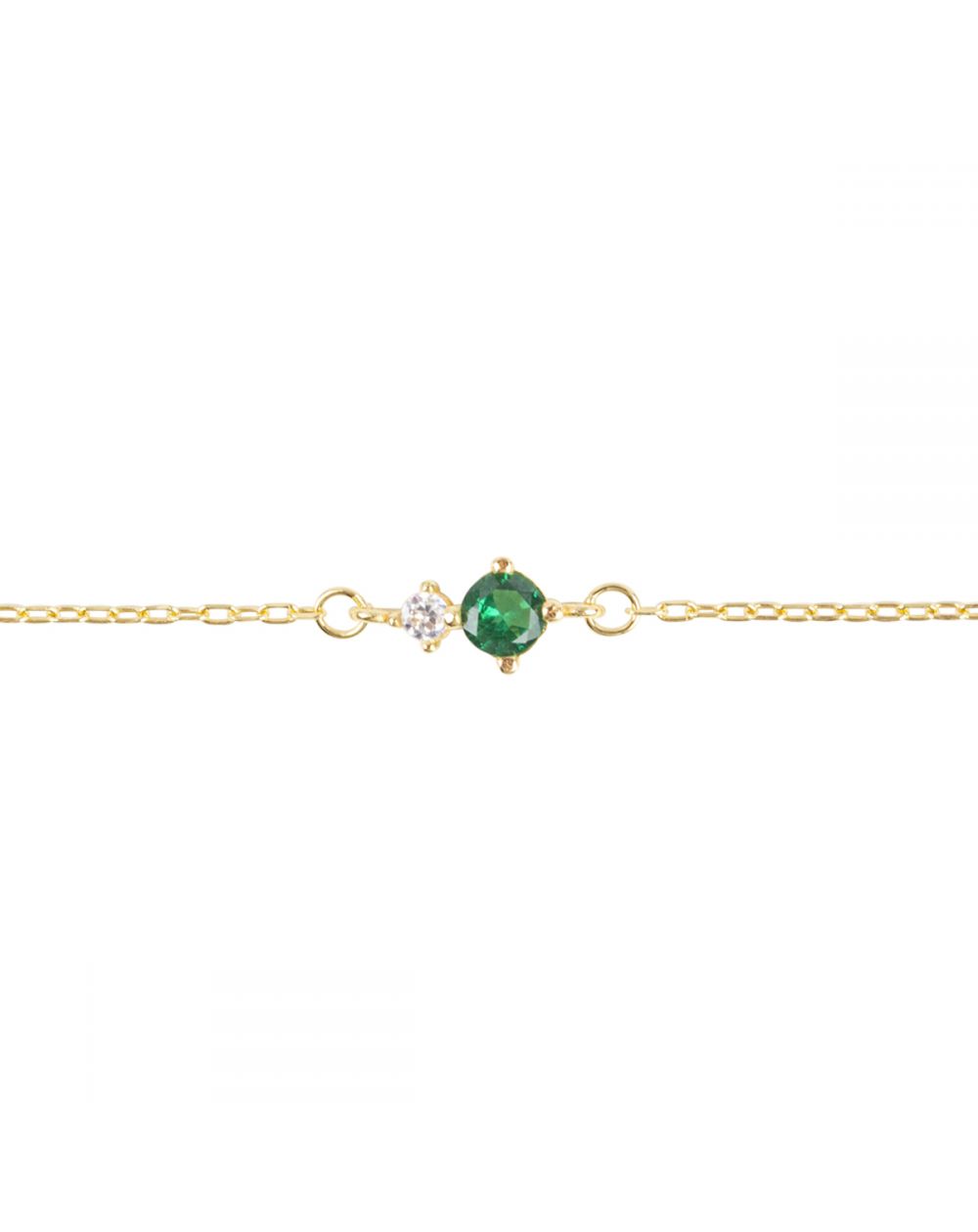 Deze gouden damesarmband is een fijne smaragdgroene stenen armband . De armband is in lengte verstelbaar van 16 tot 19 cm.