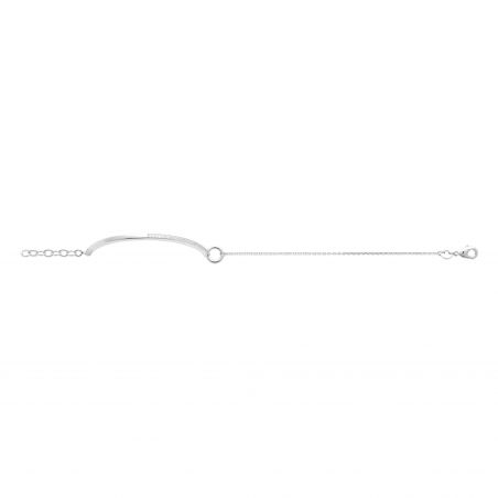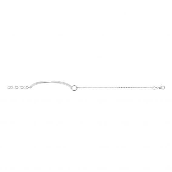 Deze semi-stijve armband van 925 gerhodineerd zilver is een elegant en verfijnd stuk. Het is versierd met glinsterende zirkoniastenen, precies uitgelijnd op een stevig deel van de armband, wat een subtiele en verfijnde glans biedt.