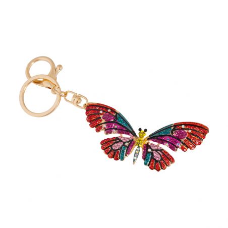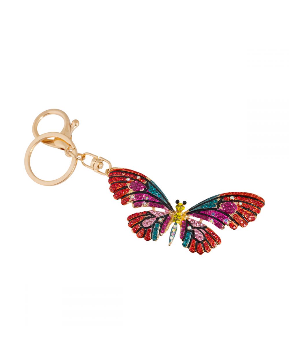 Deze vlinder sleutelhanger is een roze sleutelhanger in de vorm van een pailletten bezet met steentjes.