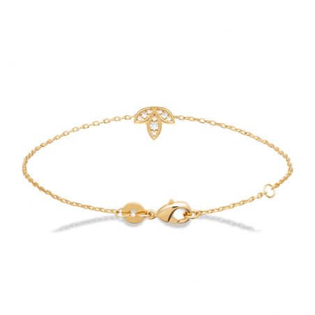 Deze betaalbare, 18-karaats vergulde armband is een verfijnd en stralend sieraad, ideaal om uw pols elegant te versieren zonder uw budget te overschrijden. Het centrale motief, versierd met fonkelende witte stenen, voegt een verfijnde en vrouwelijke touch toe, perfect voor zowel feestelijke gelegenheden als dagelijks gebruik.
