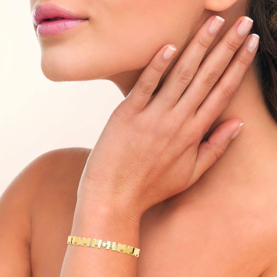 De centrale zirkoniumsteen vangt het licht intens op, terwijl de ingezette stenen de manchet elegant accentueren. Vervaardigd met 18-karaats goudplating , profiteert de armband van een hoogwaardige plating met een garantie van 10 jaar , wat zorgt voor glans en duurzaamheid bij dagelijks gebruik.