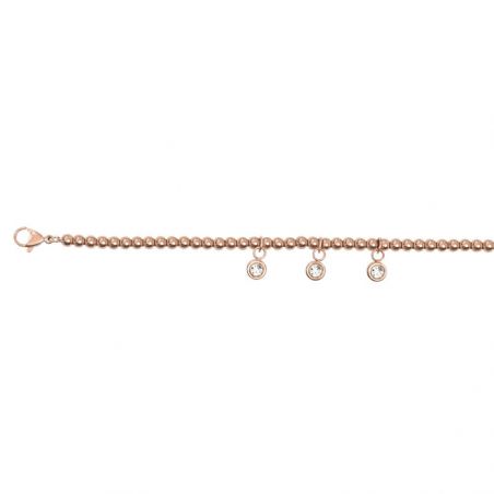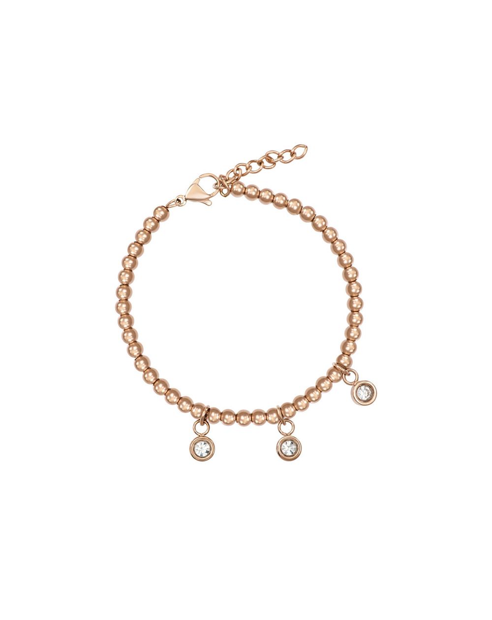 De iXXXi Dot Charm armband betovert met zijn delicate elegantie en trendy roségouden kleur. De armband is gemaakt van roségouden roestvrijstalen kralen en verfraaid met kleine hangers bezet met zirkonia , die bij elke beweging een vleugje verfijnde schittering toevoegen.