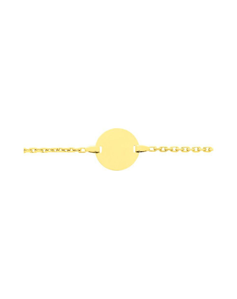 This children's number is a 9 carat gold bracelet with a small pastille that can be engraved with several letters. This bracelet is adjustable in length.