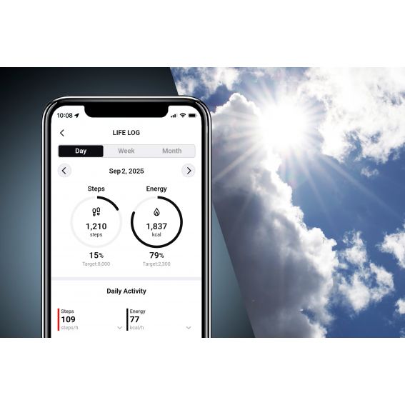 Dit horloge , dat volledig op zonne-energie werkt , telt en toont digitaal stappen voor eenvoudige en betrouwbare dagelijkse tracking. De GA-B010 combineert een analoog-digitaal display met een grote kast en een breed scherm , waardoor essentiële informatie duidelijk en direct afleesbaar is.