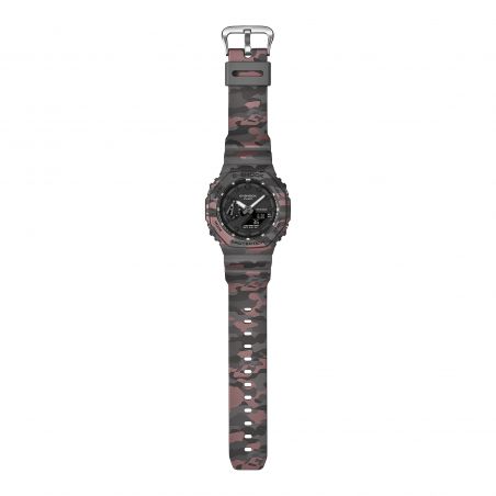 Geef je stijl een urban en technische uitstraling met de G-SHOCK GA-2100CM-8A , een vernieuwde versie van de beroemde "CasiOak" . Het metallic camouflagepatroon voegt een avant-gardistische touch toe, perfect voor streetwear- en avonturiers.