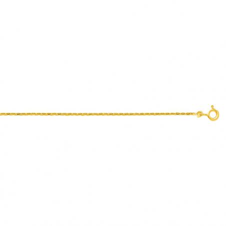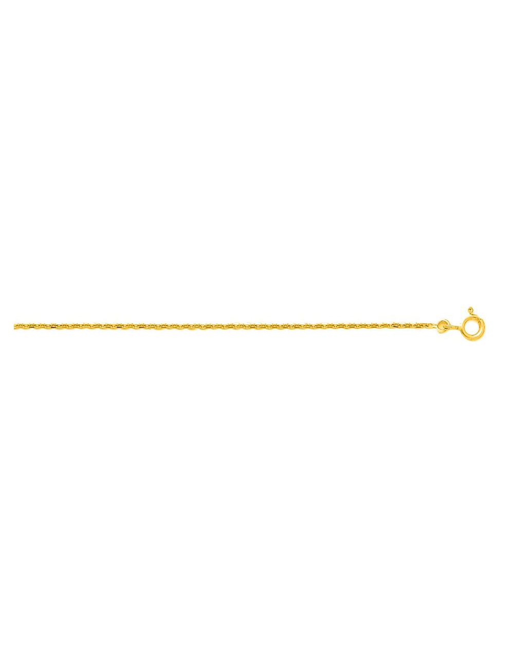 Deze 9-karaats gouden ketting is een kabelschakelketting die verkrijgbaar is in verschillende lengtes en 1,45 mm breed is.