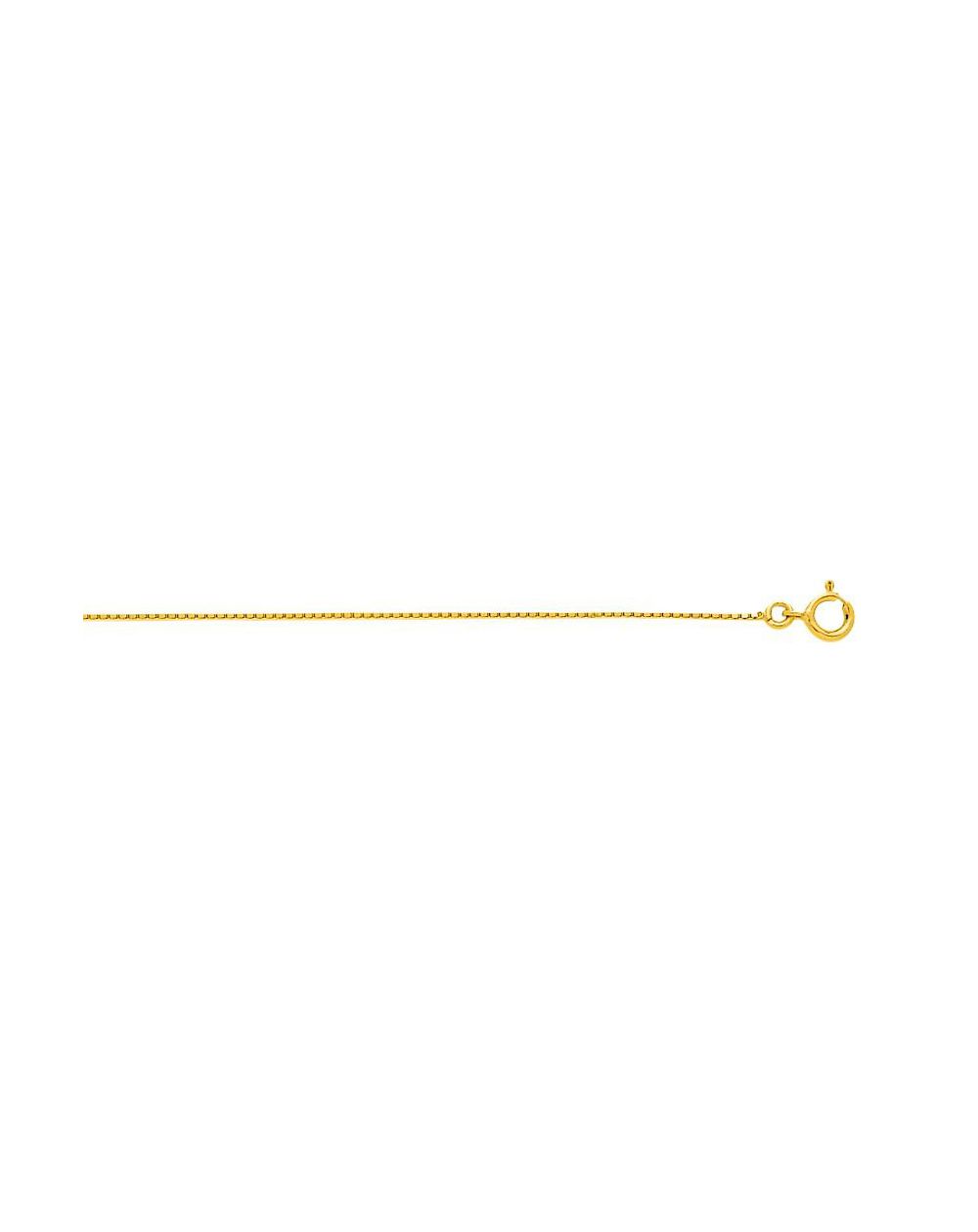 Deze 9-karaats gouden ketting is een Venetiaanse gaasketting, verkrijgbaar in verschillende lengtes en met een breedte van 0,85 mm .