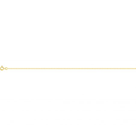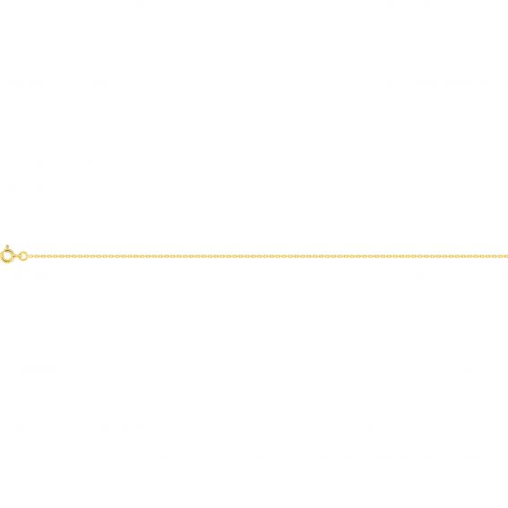 Deze 18-karaats gouden ketting is een diamantgeslepen veroordeelde ketting die verkrijgbaar is in verschillende lengtes en 1,28 mm breed is.