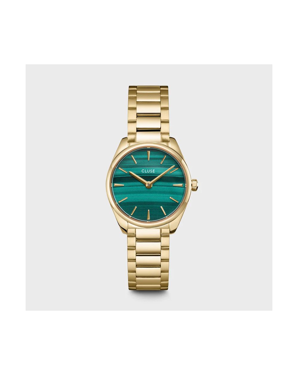 Het CLUSE Féroce Mini-horloge combineert op harmonieuze wijze minimalisme en uitgesproken verfijnde details. Met zijn 25 mm gouden ronde kast, witte wijzerplaat en 12 mm gouden horlogeband met 7 schakels zal dit Féroce Mini dameshorloge zeker indruk maken.