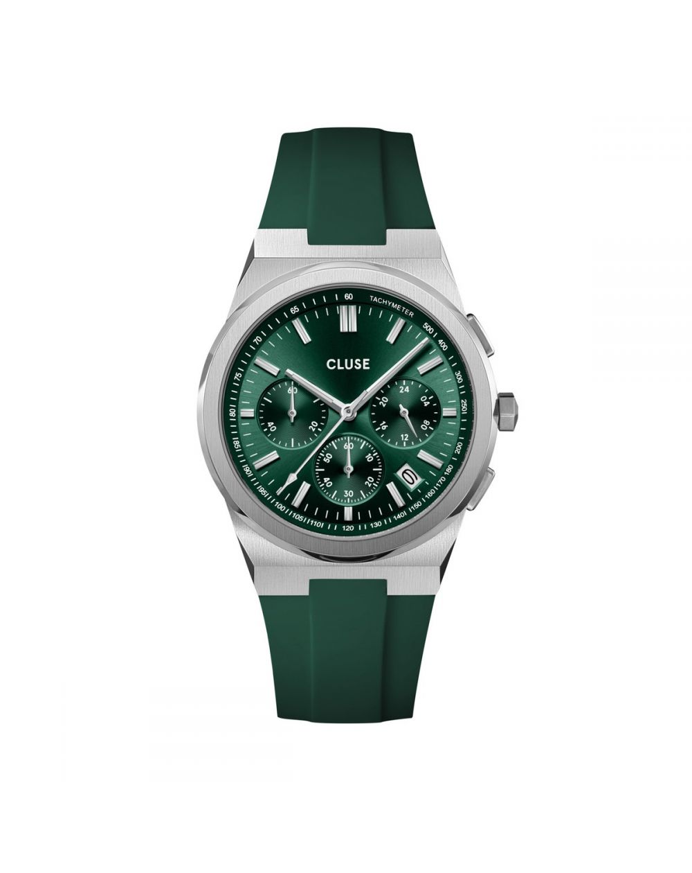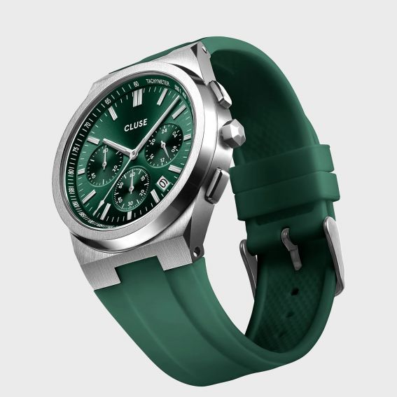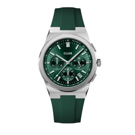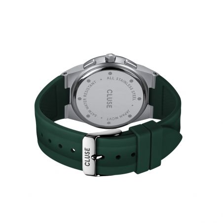 Dit horloge presenteert een stijl die zowel sportief als elegant is dankzij de combinatie van roestvrij staal en de groene siliconen band. Het is perfect voor wie op zoek is naar een praktisch horloge voor dagelijkse activiteiten met behoud van een chique en moderne uitstraling.