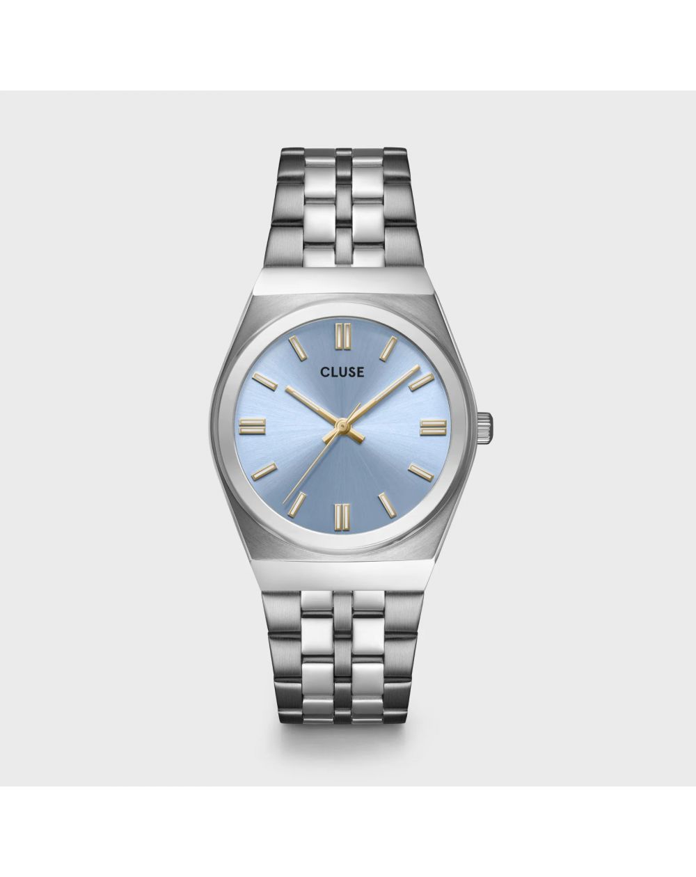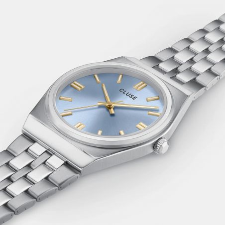 Retro 70's Horloge Staal, Lichtblauw, Zilverkleur