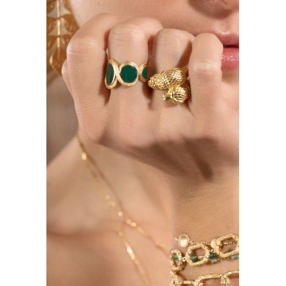 Geïnspireerd door de zeenimf Calypso, roept deze ring de zachtheid van mediterrane golven op. Het verfijnde ontwerp transporteert de drager naar het hart van de zee.