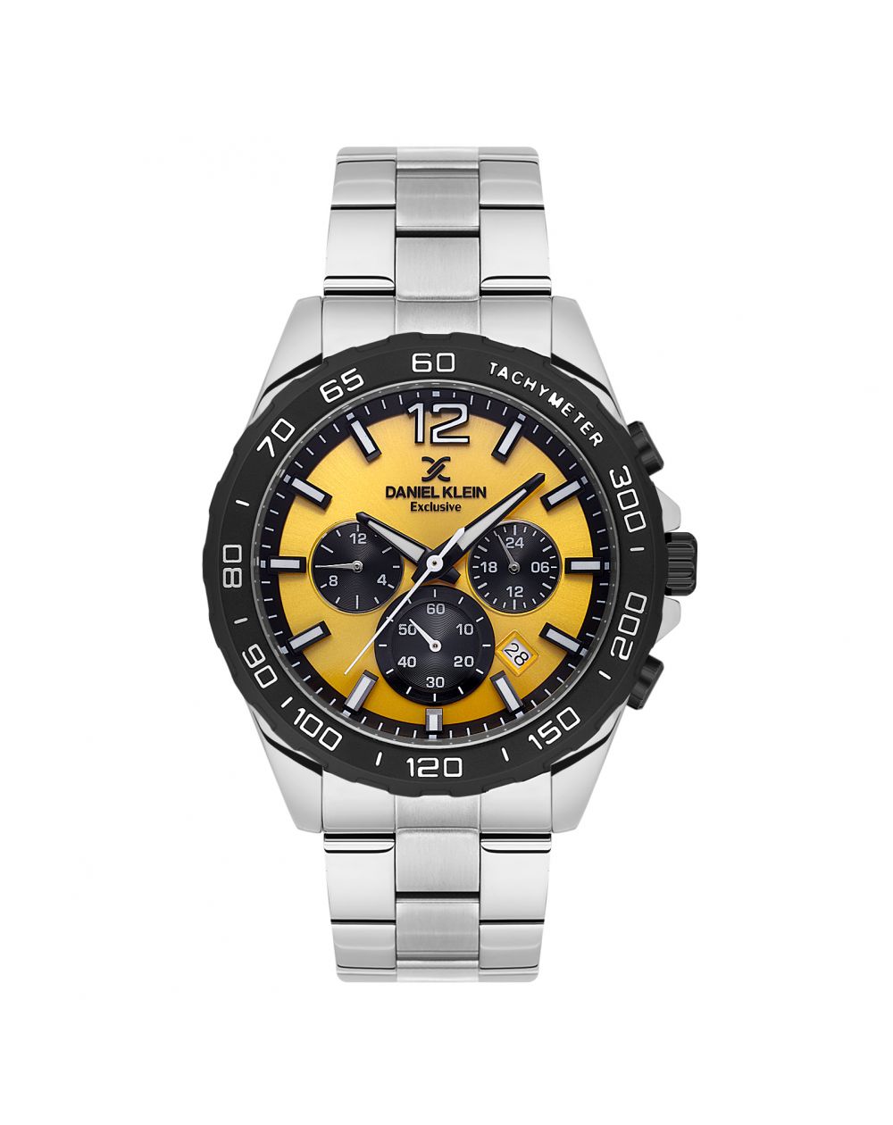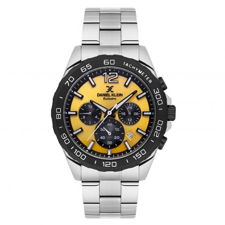 Daniel Klein DK.1.13743-3 herenhorloge, 44 mm roestvrijstalen kast met zwarte tachymeterring en zilverkleurige stalen band. De levendige gele wijzerplaat heeft een opvallend ontwerp, aangevuld met functionele subwijzerplaten en een datumweergave. Ideaal voor moderne mannen die op zoek zijn naar een accessoire dat zowel trendy als praktisch is. Bestel nu uw Daniel Klein horloge!