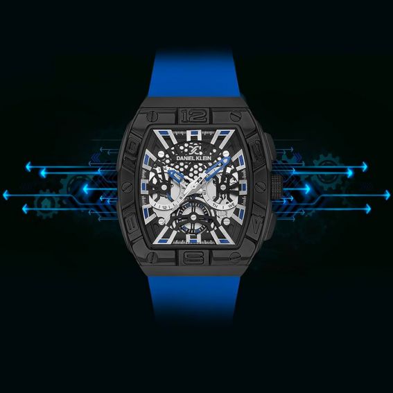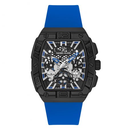 Daniel Klein DK.1.13757-3 herenhorloge, stoer en dynamisch met een stevige zwarte kast en een levendige blauwe siliconen band. De zwart-zilveren opengewerkte wijzerplaat, verfraaid met blauwe en witte details, weerspiegelt een sportief en modern design. Waterdicht tot 5 ATM, combineert stijl en functionaliteit, ideaal voor dagelijks of sportief gebruik. Bestel nu dit unieke stuk!