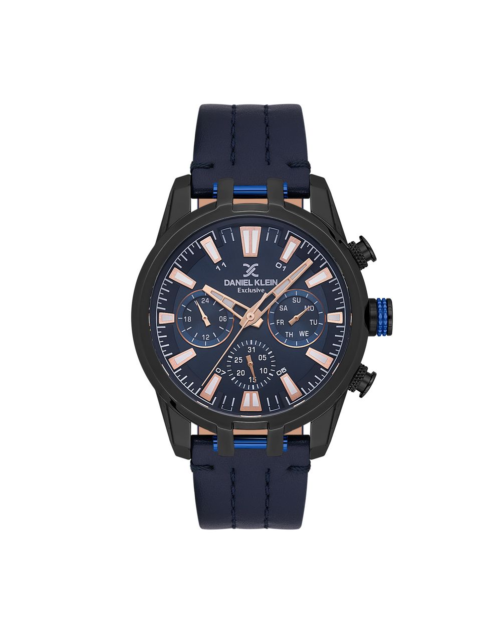 Het Daniel Klein DK.1.13803-4 multifunctionele herenhorloge combineert stijl en functionaliteit. Met zijn blauwe wijzerplaat met roségouden indexen, een robuuste zwarte kast en een blauwe leren band biedt het een modern en verfijnd design. Uitgerust met praktische functies (dag, datum en 24-uurs aanduiding) is het perfect voor een actieve levensstijl. Veelzijdig en comfortabel, is dit horloge het ideale accessoire voor een formele of casual outfit. Combineer elegantie en precisie met dit onmisbare model.