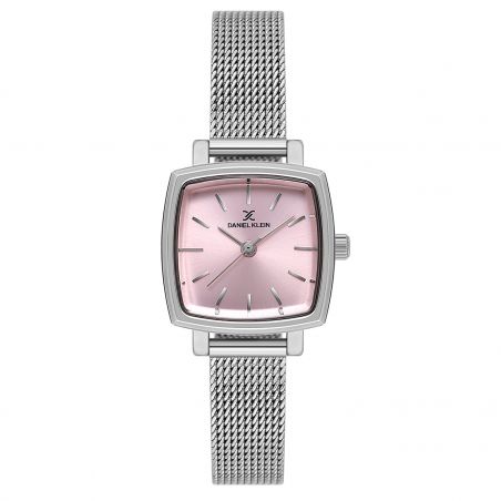 Dit dameshorloge van het merk Daniel Klein DK.1.13726-2 is een horloge met een metalen band en een roze achtergrond.
