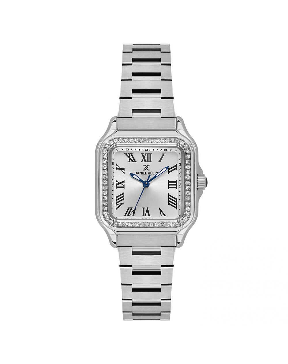 Verfijnd en modern, het Daniel Klein DK.1.14040-1 horloge is een vrouwelijk horloge dat de pols een vleugje prestige geeft. De vierkante kast van 28 mm, subtiel versierd met sprankelende kristallen, omlijst een zilveren wijzerplaat met elegante Romeinse cijfers, voor een stijl die zowel klassiek als uitgesproken eigentijds is.