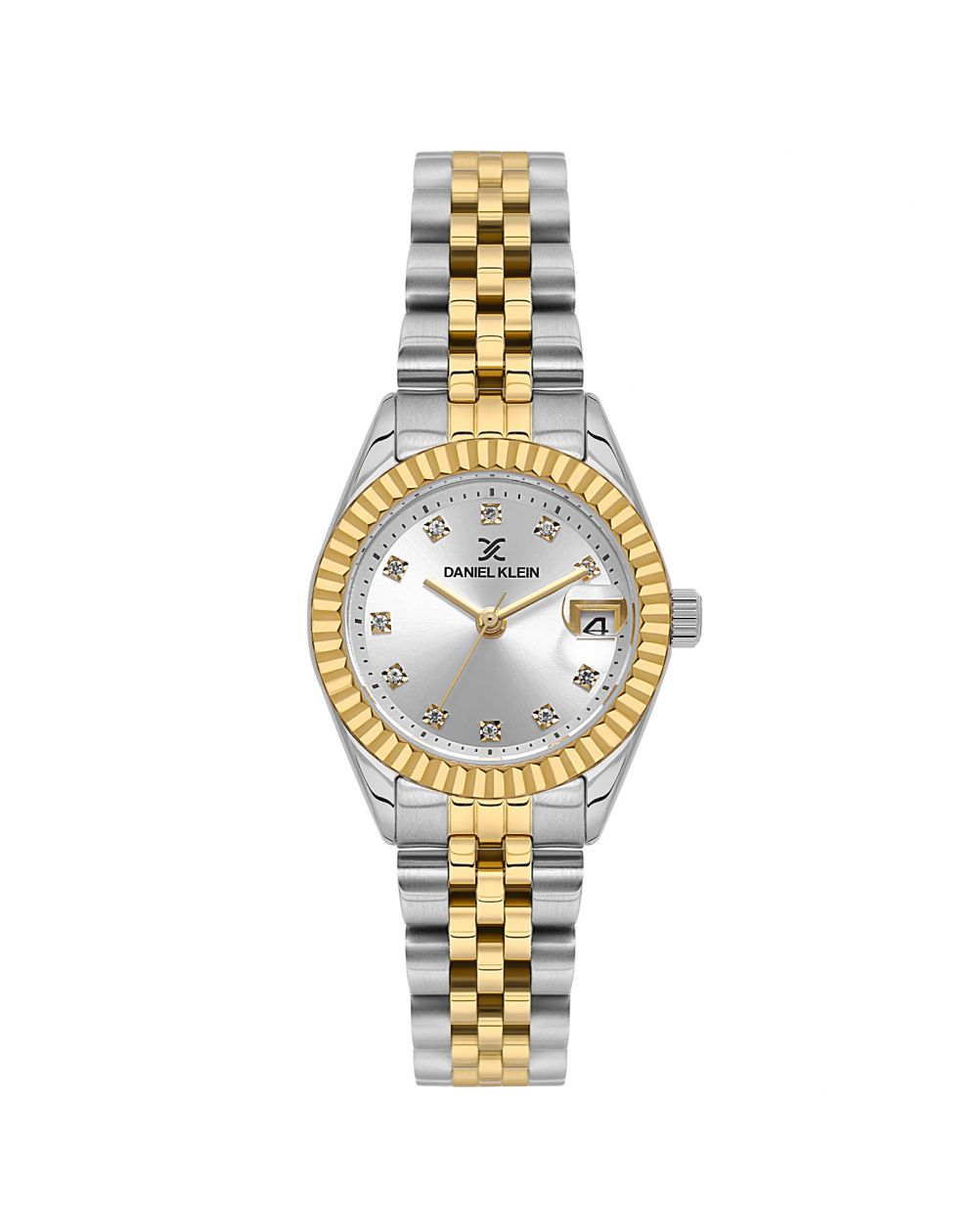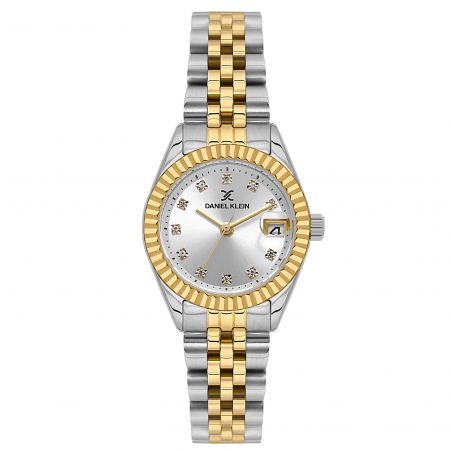 De Daniel Klein DK.1.13969-6 is een dameshorloge dat bekoort met zijn tijdloze charme en tweekleurige verfijning. De 28 mm zilver-gouden kast geeft een stralende en chique touch, perfect om al je outfits te verfraaien, van dagelijks gebruik tot meer formele gelegenheden.