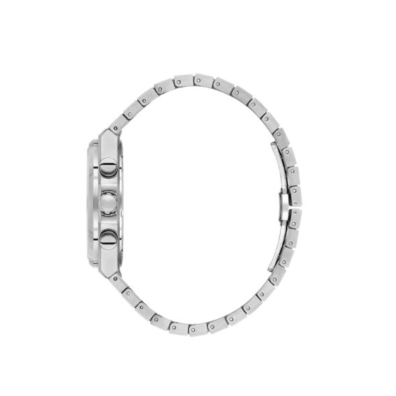 Met zijn ronde kast van 43 mm is dit horloge een opvallende verschijning om de pols, terwijl het dankzij de zilverkleurige metalen band toch comfortabel draagt. Het quartz uurwerk garandeert een betrouwbare nauwkeurigheid, perfect voor dagelijks gebruik.