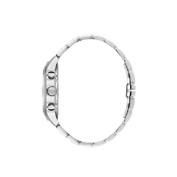 Maak een statement met dit zilverkleurige herenhorloge met een modern, gestructureerd ontwerp , ideaal voor een elegante én veelzijdige look. De kast van 44 mm zorgt voor een opvallende aanwezigheid om de pols, perfect voor horlogeliefhebbers die een onderscheidende stijl waarderen.