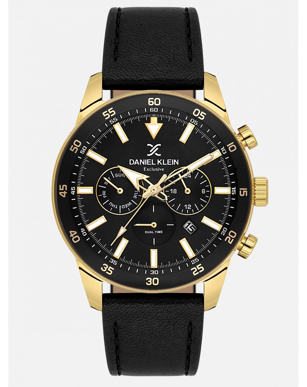 Daniel Klein herenhorloge in zwart en goud – elegant quartz uurwerk met zwarte wijzerplaat