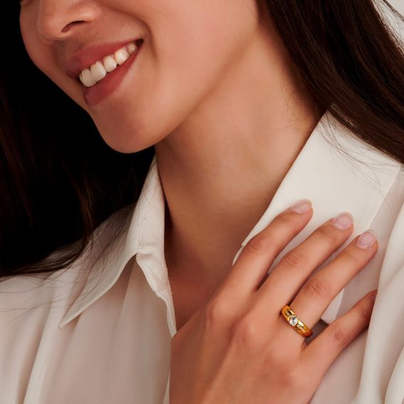 Deze Endearment-ring van het merk Diamanti Per Tutti is een ring van 925 zilver (gerhodineerd zilver of verguld met 18-karaats fijn goud) bezet met 10 echte sprankelende witte diamanten .