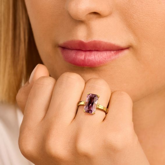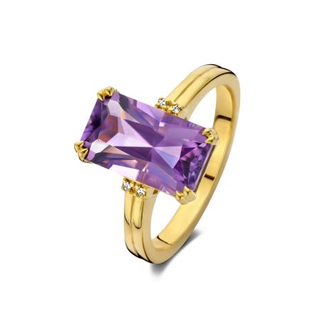 Deze ring van het merk Diamanti Per Tutti is een ring van 925 zilver (gerhodineerd zilver of verguld met fijn 18-karaats goud) bezet met een amethist en 4 echte sprankelende witte diamanten .