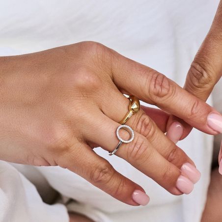 Of je hem nu alleen draagt om het unieke ontwerp te benadrukken of in combinatie met andere sieraden voor een meer gedurfde look, deze ring past bij elke gelegenheid. Het is de perfecte alliantie tussen natuurlijke schoonheid en nauwgezet vakmanschap.