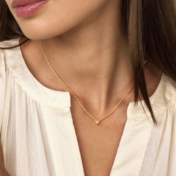 Een nieuwe editie van onze iconische en best verkochte First diamanten halsketting. Dezelfde centrale hanger met zeven diamanten (7x), nu verkrijgbaar aan een speelse kralenketting. Nog steeds het beste stuk om uw dagelijkse diamantenjuwelencollectie te starten en gemakkelijk te combineren met uw toekomstige aanwinsten.