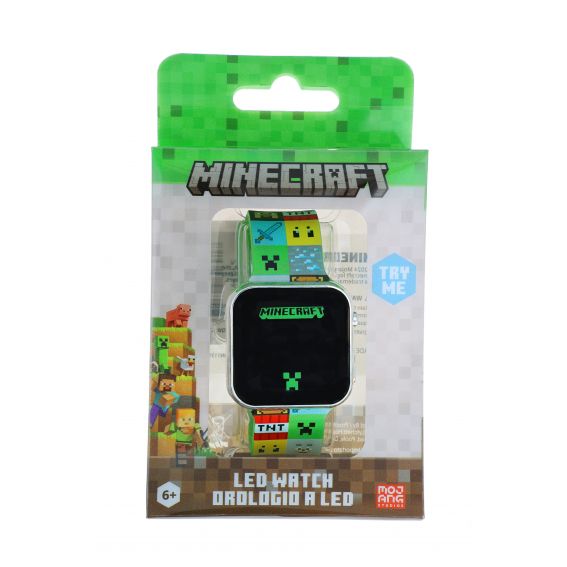 Dit digitale Minecraft -horloge heeft een gepixeld ontwerp dat is geïnspireerd op de populaire videogame. De groene armband is versierd met iconische iconen zoals Creepers, TNT en karakteristieke blokken uit het Minecraft- universum. Het moderne LED-scherm geeft de tijd op stijlvolle wijze weer. Ideaal voor jonge fans. Combineert plezier en functionaliteit voor een geeky en trendy look.