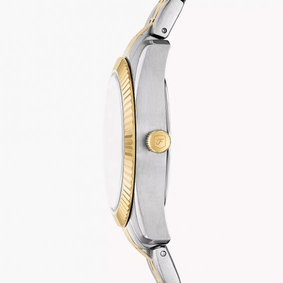 Verfijnd en tijdloos, het Fossil Scarlette horloge verleidt met zijn klassieke elegantie en eigentijdse touch. De diepgroene wijzerplaat wordt geaccentueerd door sprankelende indexen en goudkleurige Romeinse cijfers, terwijl de tweekleurige (zilver en goud) roestvrijstalen kast zorgt voor een luxueuze afwerking.