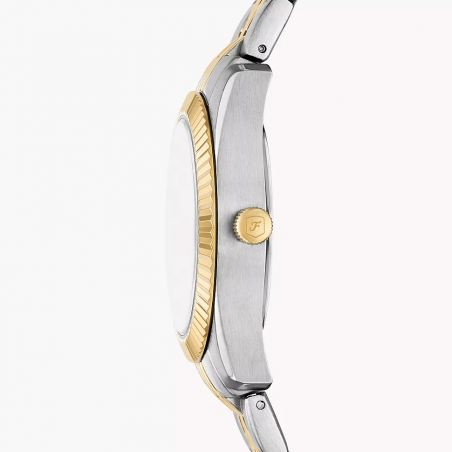 Met een driewijzeruurwerk en een datumweergave op 3 uur met een geïntegreerd vergrootglas combineert dit horloge stijl met functionaliteit. De goud- en zilverkleurige roestvrijstalen band met gepolijste schakels biedt optimaal comfort en een chique look voor elke gelegenheid.