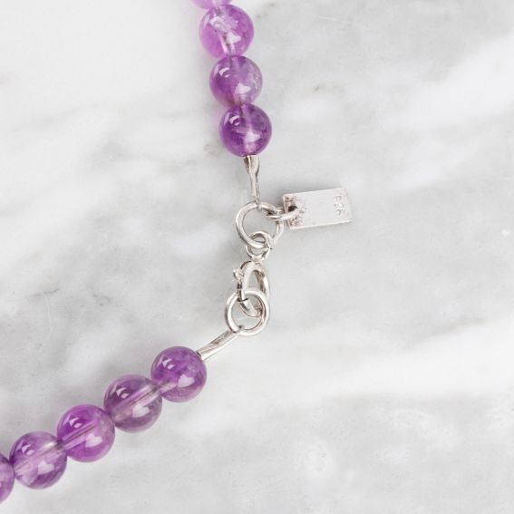 Eigenschappen van deze armband: De Amethiststeen bevordert studie en meditatie. Vecht tegen alle dronkenschap. Brengt kalmte, tegen boosheid. Voor een rustige slaap.