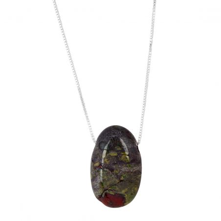 Deze ketting is voorzien van “Dragon Jasper”-stenen .