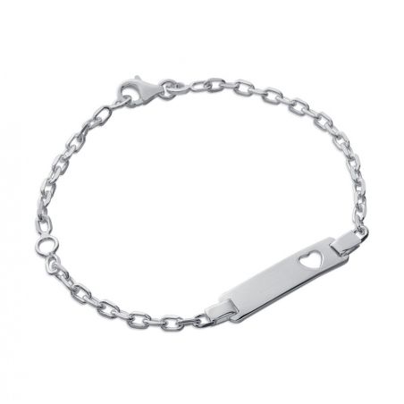 Dit 925 zilveren nummer is een armband met een klein plaatje met een geperforeerd hart dat aan beide zijden gegraveerd kan worden met een voornaam en een datum. De lengte van de armband is 16cm en is in lengte verstelbaar (14 of 16cm).