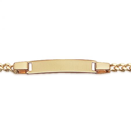 Dit hoogwaardige 18-karaats vergulde nummer is een armband met een kinketting en een klein plaatje dat aan beide zijden kan worden gegraveerd met een voornaam en een datum. De lengte van de armband is 16cm en is in lengte verstelbaar (14 of 16cm).