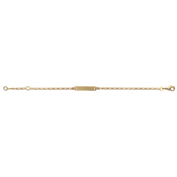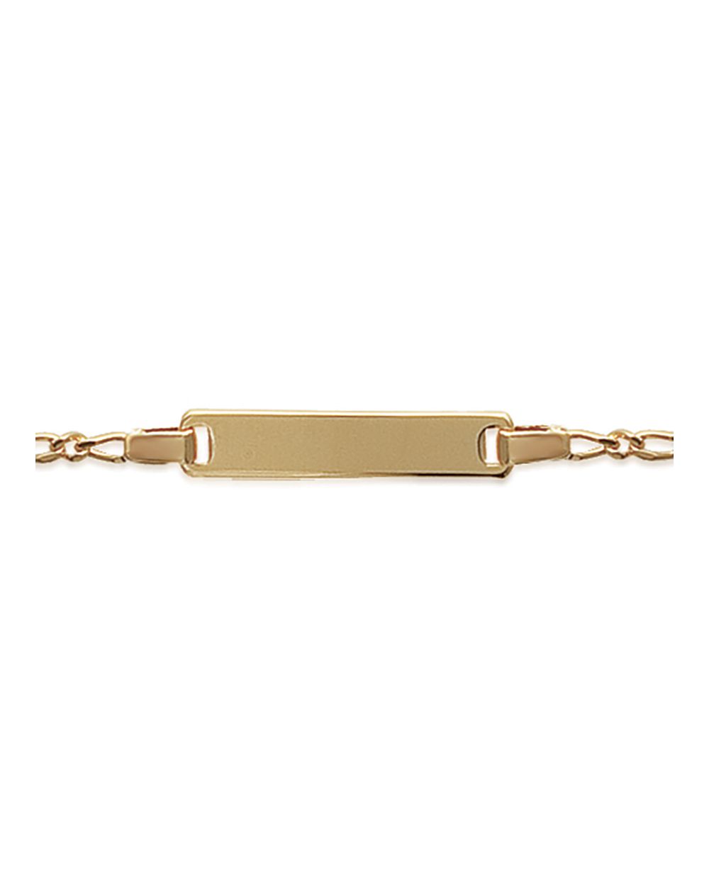 Dit hoogwaardige 18-karaats vergulde nummer is een armband met een plaatje dat aan beide zijden gegraveerd kan worden met een voornaam en een datum. De lengte van de armband is 15cm en is in lengte verstelbaar (13 of 15cm).