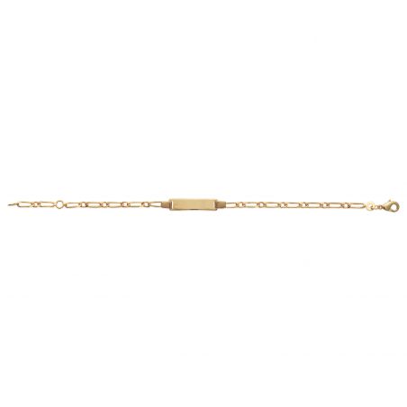 Deze hoog kwaliteit 18 karaat vergulde matricule is een armband met een kleine brochure die kan worden gegraveerd met 2 zijden van een voornaam en een datum. De lengte van de armband is 16 cm en is verstelbaar in lengte (14 of 16 cm).