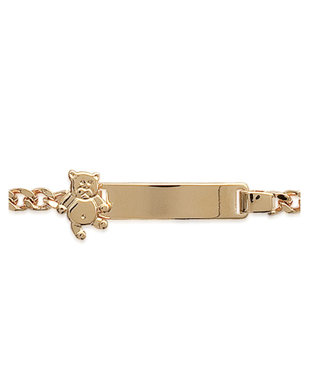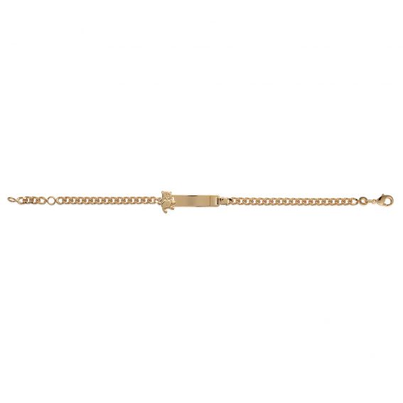 Dit hoogwaardige 18-karaats vergulde nummer is een armband met een klein plaatje met een teddybeer die aan beide zijden gegraveerd kan worden met een voornaam en een datum. De lengte van de armband is 16cm en is in lengte verstelbaar (14 of 16cm).