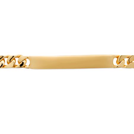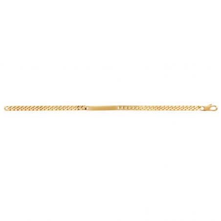 Deze hoog kwaliteit 18 karaat vergulde matricule is een armband met een brochure die kan worden gegraveerd met 2 zijden van een voornaam en een datum. De lengte van de armband is 18 cm.