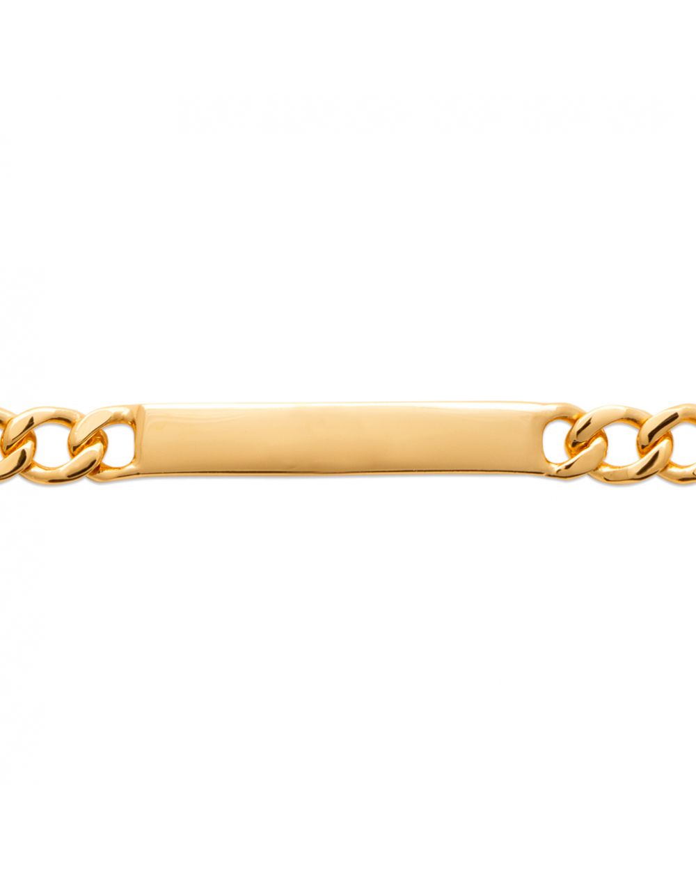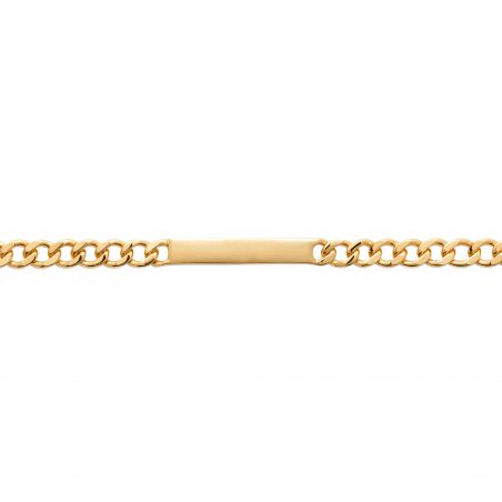 Deze hoog kwaliteit 18 karaat vergulde matricule is een armband met een brochure die kan worden gegraveerd met 2 zijden van een voornaam en een datum. De lengte van de armband is 18 cm.