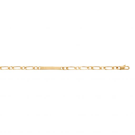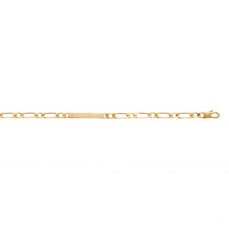 Deze hoog kwaliteit 18 karaat vergulde matricule is een armband met een brochure die kan worden gegraveerd met 2 zijden van een voornaam en een datum. De lengte van de armband is 18 cm.