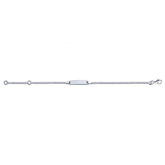 Deze 925 gerhodineerd zilveren armband . is een identiteitsbewijs voor kinderen waarvan het bord gegraveerd kan worden met een datum of een voornaam. De te graveren plaat is 20 mm lang en 4 mm breed.